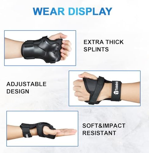 - Breathable & Comfortable - Our wrist guards are designed with shock-absorbing EVA foam situated between the splints and wrist, making them comfortable to wear. The inner cushion pad is sweat absorption and provide extra protection to reduce impact. And the exposed area on the back of the hand is breathable.
