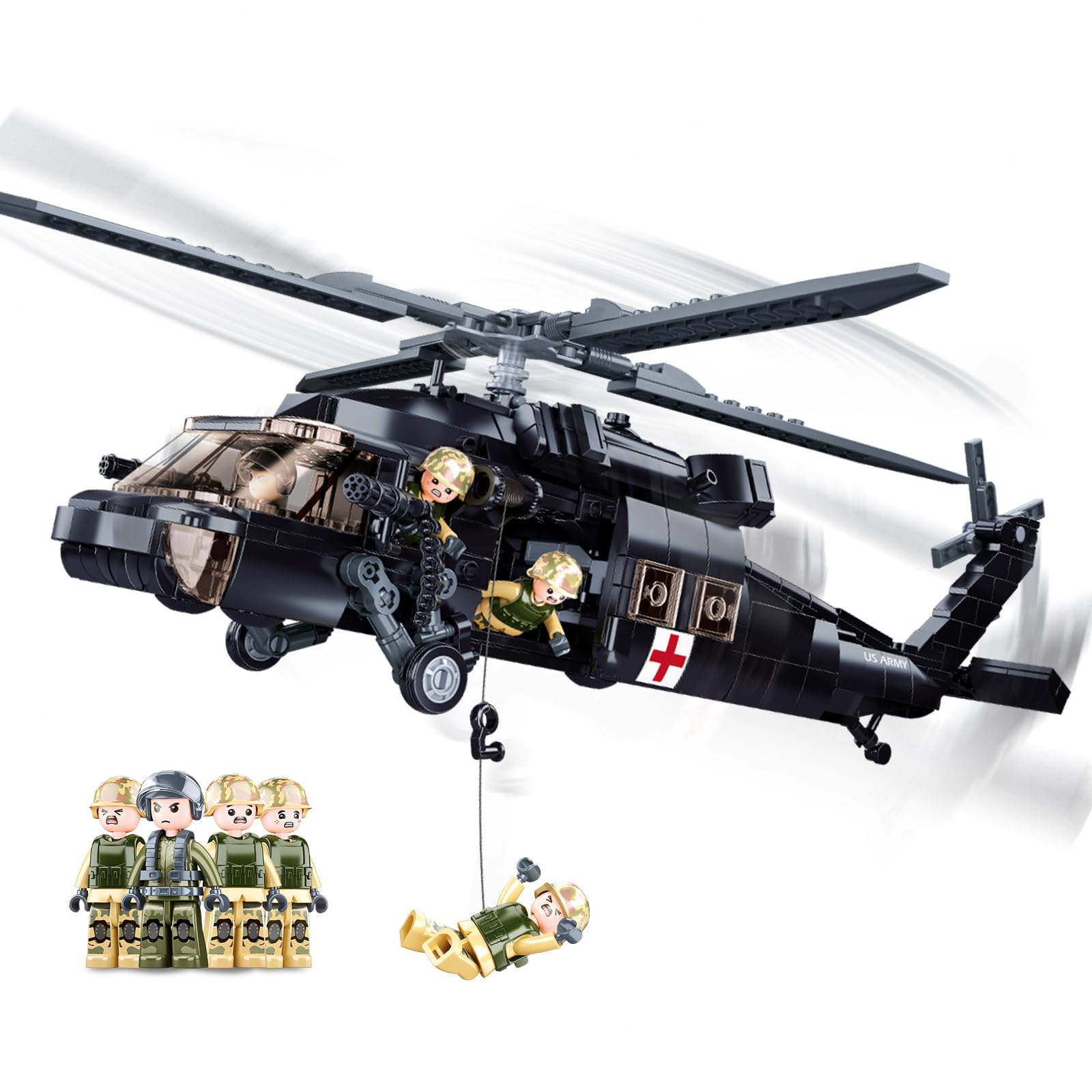 - 【UH-60 Helicopter Building Set】The UH-60 Black Hawk Rescue Helicopter Model boasts a highly detailed and authentic design, perfectly capturing the iconic look of this legendary military helicopter from WW2. It includes four soldier minifigures and various accessory equipment, all crafted with precision. As a multi-purpose toy helicopter, every aspect of it—from its sleek fuselage to the intricate rotor blades—mirrors the grandeur of the original, making it an absolute must-have!