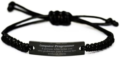 Computer Programmer Engraved Black Rope Bracelet - Solving Problems, Unique Gifts for Graduation, Birthday, Christmas - Confidence Boosting Accessory for Computer Programmers