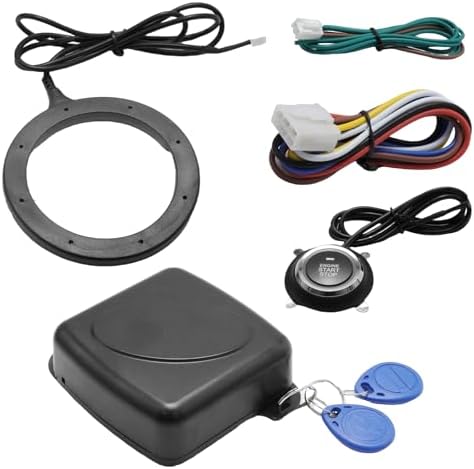 - Package Contents: This package includes 1 Car Engine Push Starter Host, 1 Push Start/Stop Button, 1 RFID Sensor Ring, 1 Installation Wire, 1 English User Manual, and 2 RFID Keys