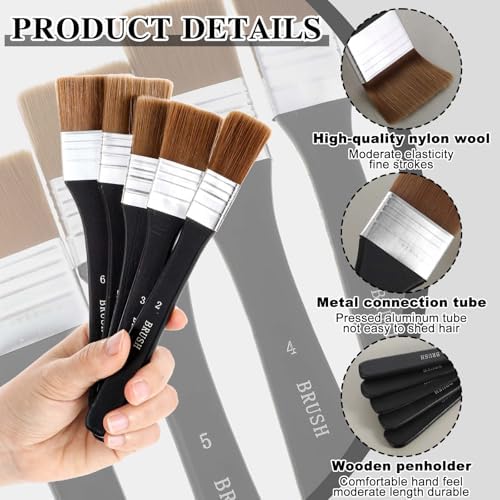 5 Pcs Wide Flat Paint Brushes, Art Brushes for Acrylic Painting Soft Painting Brushes Assorted Sized Craft Brushes Nylon Chip Brushes Artist Varnish Brush Art Paintbrush Sets for Oil Canvas Gesso