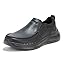 Experience premium comfort and style with these slip on shoes for men from Skechers. The Relaxed Fit Decklan Aldred features a sophisticated leather upper with dual gore panels for easy wear. This mens slip on shoes design combines casual versatility with all-day comfort, featuring Air-Cooled Memory Foam cushioning and Memory Arch support. Perfect for those seeking mens slip on sneakers that blend professional looks with casual comfort.