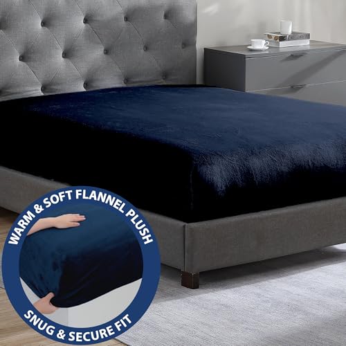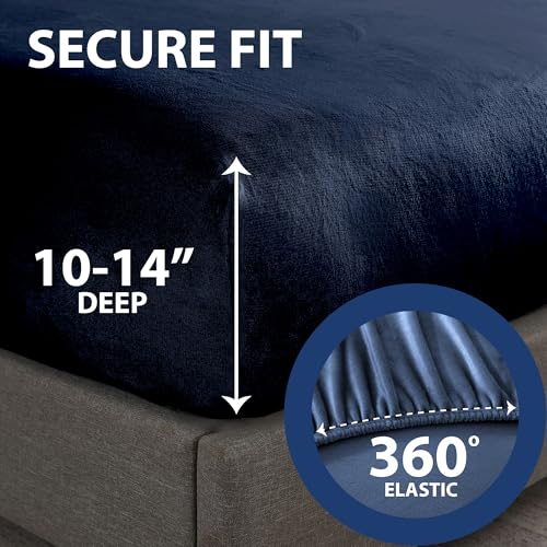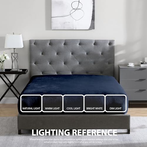 Cathay Home Twin Plush Fur Fitted Sheet - Ultra Soft & Thick Plush Fur - All Season Cozy Warmth - 12" Deep Pocket Fitted Sheet Only (Twin, Navy)