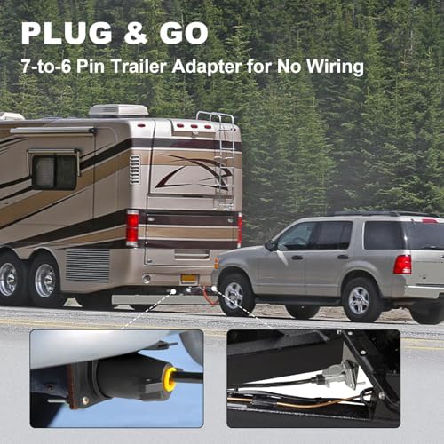 - 【Plug & Go】Designed for quick, hassle-free setup, this 7 pin to 6 pin trailer adapter connects directly between your RV's 7 way socket and your towed vehicle's 6 way socket. Get up and running in seconds without any complicated wiring