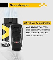 - **Worry about programming? Need a new keyless remote? **Our Kit uses state-of-the-art technology and is the first one on the market capable of programming smart keys. You just program it at home, take 5-10 min, and get a new key without paying expensive fees. Paired with keys to give you more peace of mind.NOTE: 1. Before you buy it, Please make sure that your original FCC, chip and Buttons are the same as our product in case of money lose. 2. You must have one working remote to program the key(as to start the ignition) 3. No need to cut the emergency keyThis remote is replacememnt for FCC ID: HYQ14AHK Frequency: 433Mhz TRANSMITTER: 231451-7000Compatibility :For 2018-2019 Subaru Impreza For 2018-2019 Subaru Crosstrek For 2018-2019 Subaru Outback For 2018 Subaru Legacy Disclaimer: Remote2program Kit is only used by car owners to program their own vehicles, and other actions are not affiliated with Remote2program