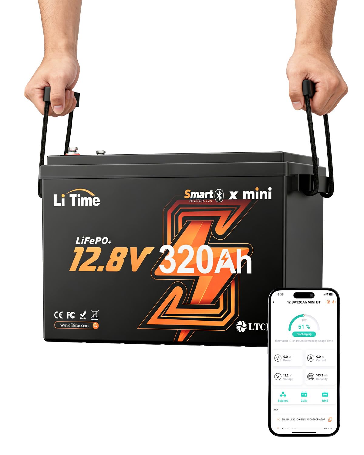 LiTime 12V 200Ah LiFePO4 Lithium Deep Cycle Battery Bluetooth, Low-Temp Protection, 2560Wh Energy Max. 1280W Load, Built-in 100A BMS, Up to15000 Cycles, Perfect for RV, Solar Energy Storage