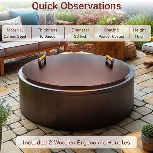 - Spacious Design: Measuring 38 inches in diameter, this fire pit lid offers extensive coverage for fire pits inner dia up to 36 inches, ensuring thorough protection against outdoor elements.