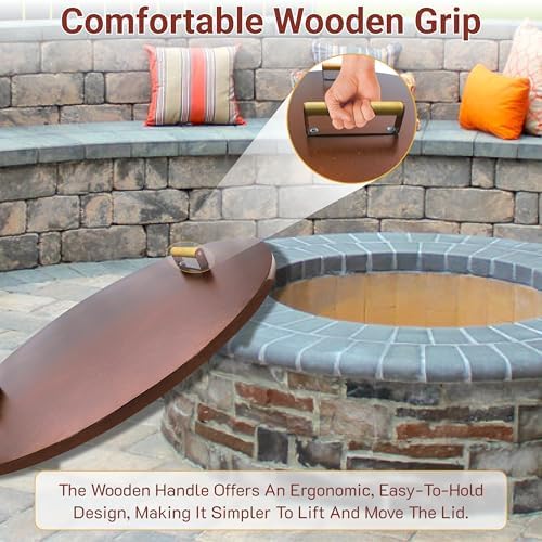 - Easy Handling: Featuring two ergonomic wooden handles, our outdoor fire pit cover enables effortless placement and removal, ensuring convenient carrying and usage without any hassle
