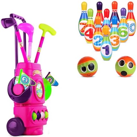 Complete Beginner Golf Set! – Our ToyVelt Mini Golf Set includes a practical golf cart with 2 wheels, 4 colorful golf clubs of different shapes and sizes, 6 special balls, a putting mat, and 2 practice holes. Perfect for little golfers BOWLING SET FOR KIDS 2-5: Our age-appropriate unisex bowling set for toddlers is specially designed for kids and will help keep your children engaged, occupied and entertained on rainy days! Plus, your kids will spend less time playing video games and more time enjoying an old-school activity.