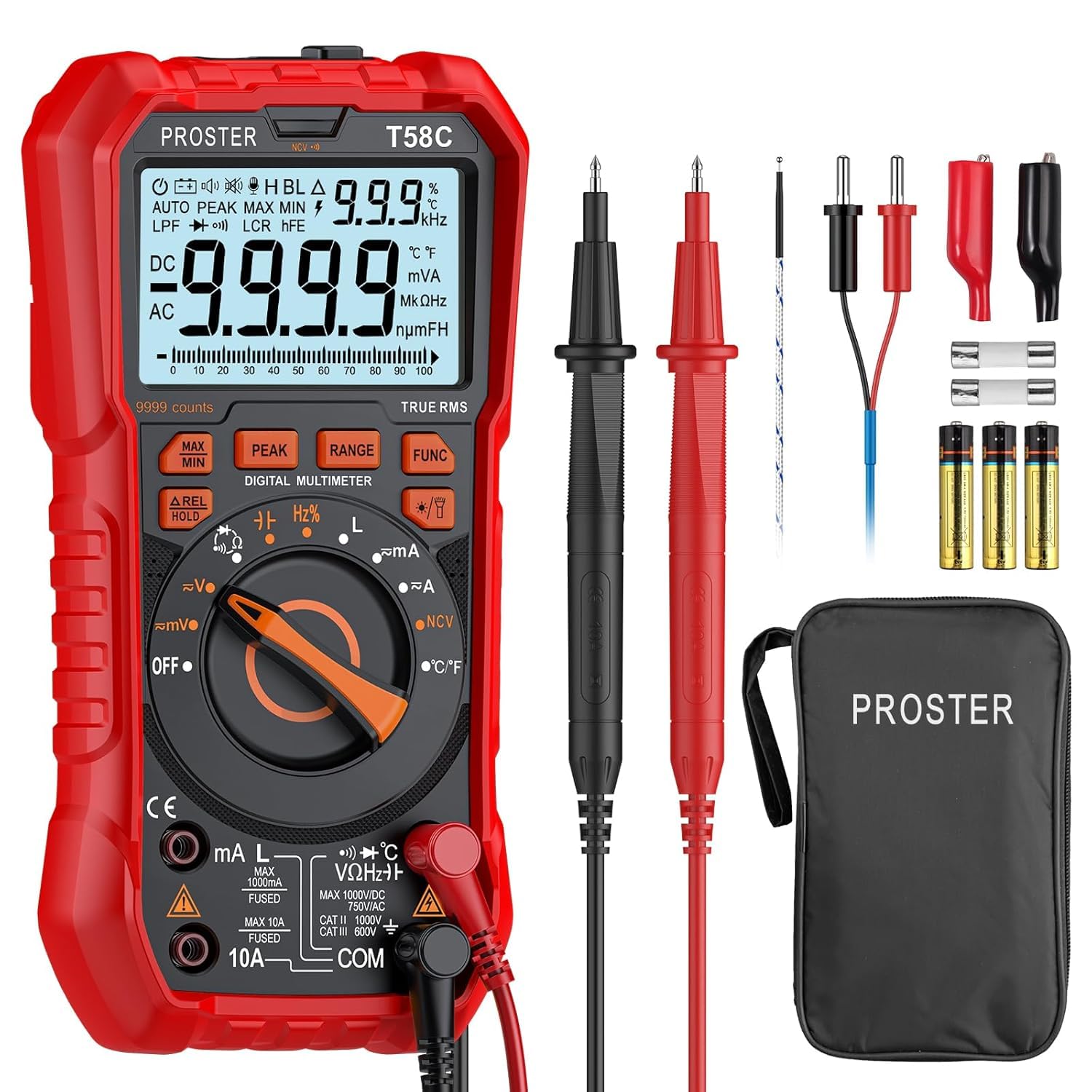 Proster USB C Rechargeable Smart Multimeter with 5.0 Inch Color Screen - 6000 Count Smart Multi Testers, True RMS Autoranging Multimeter, NCV Capacitance, CAT III 600V Safety
