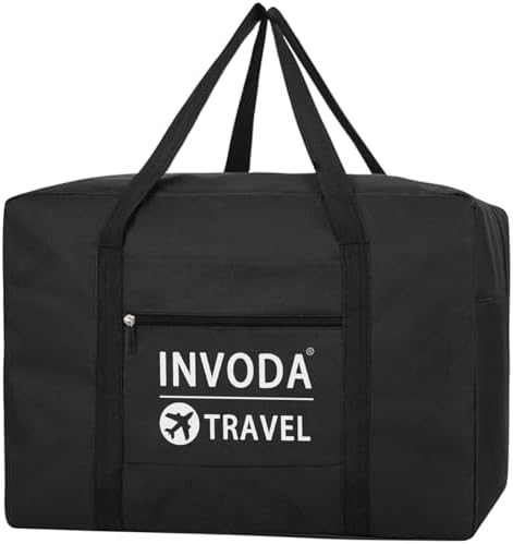 Multipurpose - Use it as a travel duffel bag, overnight bag, weekend bag, gym bag, workout bag, sports bag, dance bag, overnight bag, carry on bag, or travel bag. Carry all your gym and travel essentials. Travel Friendly - Integrated trolley sleeve slides over rolling luggage handle. A zippered pocket on the luggage strap sleeve for holding travel essentials like phones and passports. Water ResistantThis duffel bag is made of nylon fabric that is tear and water resistant, and all stitches are strengthened to suit long-term use. Great Gift - If you want to give a practical gift to your family or friends, INVODA's duffel bag is a very good choice. Its appearance is simple and stylish, lightweight and durable, foldable, very suitable for short trips, business trips, camping, etc. Travel bag size: 17.7 x 5.5 x 12.6 inches