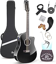 - COMPLETE ACCESSORY BUNDLE FOR BEGINNERS: The acoustic guitar kit comes fully equipped with all the essentials: a gig bag, guitar cable, capo, strap, tuner, strings, string winder, sanding block, Allen wrench, picks, pickguard, cleaning cloth, and a user manual. This comprehensive set ensures you have everything you need to start playing right out of the box.