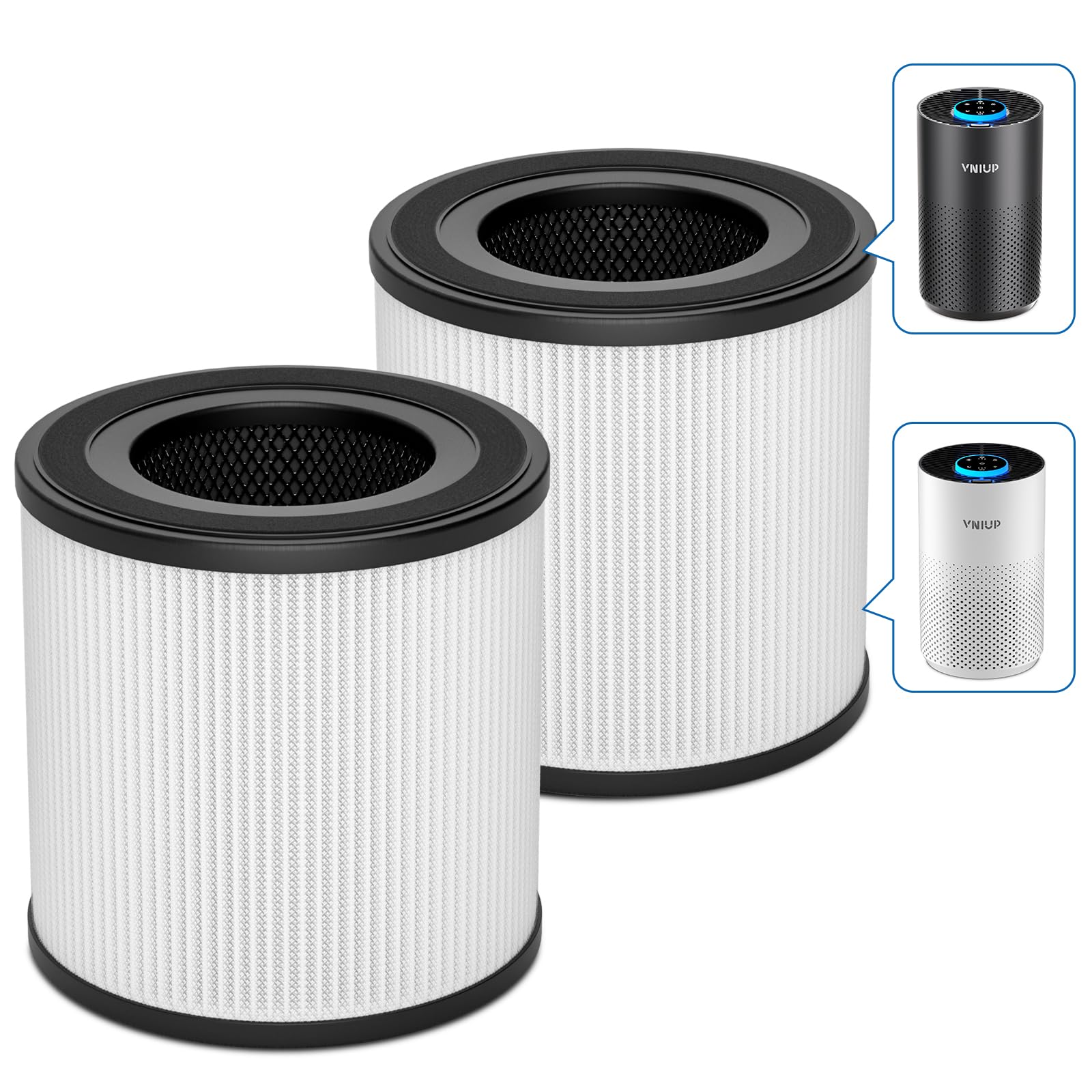 - 【360° High Efficient Purification】 : Note: The power adapter is placed with the filter, please open the bottom base cover to find it, this is VNIUP latest design of a true hepa air purifier with 360° suction design to clean the air in rooms up to 880 square feet. It can quickly catch odors, smoke, dust, pollen, dander, and inside the air purifier is an upgraded H14 filter that can efficiently purify the air and output healthy and comfortable air