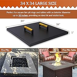 Tough & Resilient: Built from rugged 16-gauge carbon steel fire pit snuffer lid fits up to 32" firepits, this fire pit metal lid offers exceptional durability and long-lasting outdoor protection against heat, rust, and debris. High-Temperature Protection: fire pit lid square coated with a heat-resistant finish to prevent warping, this fire table lid can handle extreme heat and maintain its strength, ensuring safe and efficient performance for your fire pit lids Versatile Tabletop Design – Fire pit metal lid transforms your firepit into a functional tabletop when not in use this campfire lid providing extra space for drinks, snacks, or decor while keeping your firepit protected Durable Wooden Handles for Easy Use – This fire pit metal cover designed with a heat-resistant wooden handle that stays cool to the touch, providing a secure, comfortable grip for effortless lifting and safe handling of the firepit lid. Timeless Appeal: The versatile design of the square metal fire pit lid complements various fire pit styles, this outdoor fire pit with lid enhances safety and convenience for all your outdoor gatherings.