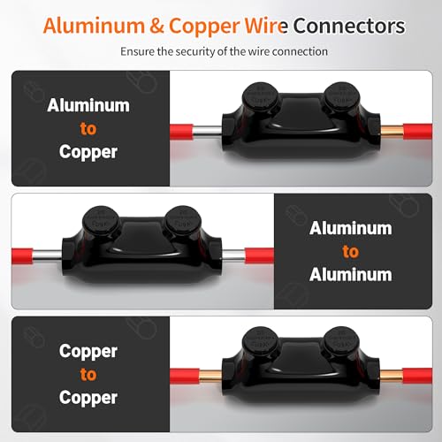 - Aluminum&Copper Wire Connection: The aluminum to copper wire connectors allows the copper wire to copper wire, aluminum wire to aluminum wire, and copper wire to aluminum wire connection, which enabled the copper and aluminum wire to be safely stitched together. It is more secure and reliable for your wiring