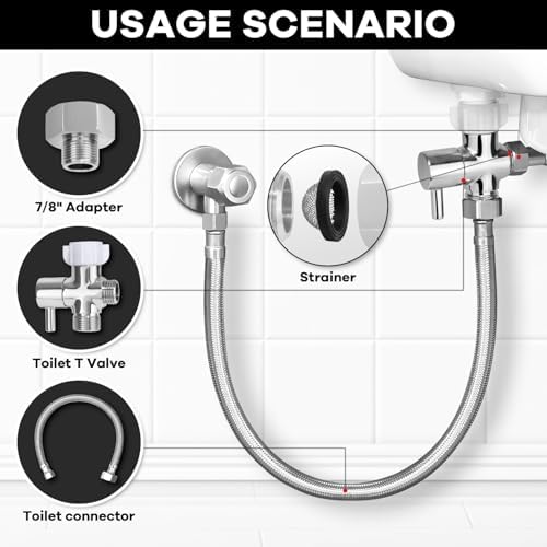 - T-valve adapter is made of high-quality solid brass and the surface is chrome-plated, which is beautiful and durable, and can be used for a long time. We include an 15.75Inch additional high-quality supply hose, allowing you to replace old or worn-out water lines. This upgrade promotes better hygiene and reduces the risk of leaks, ensuring a healthier bathroom experience.