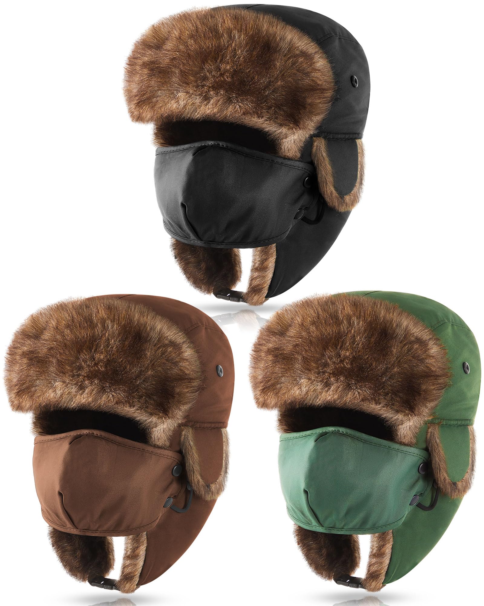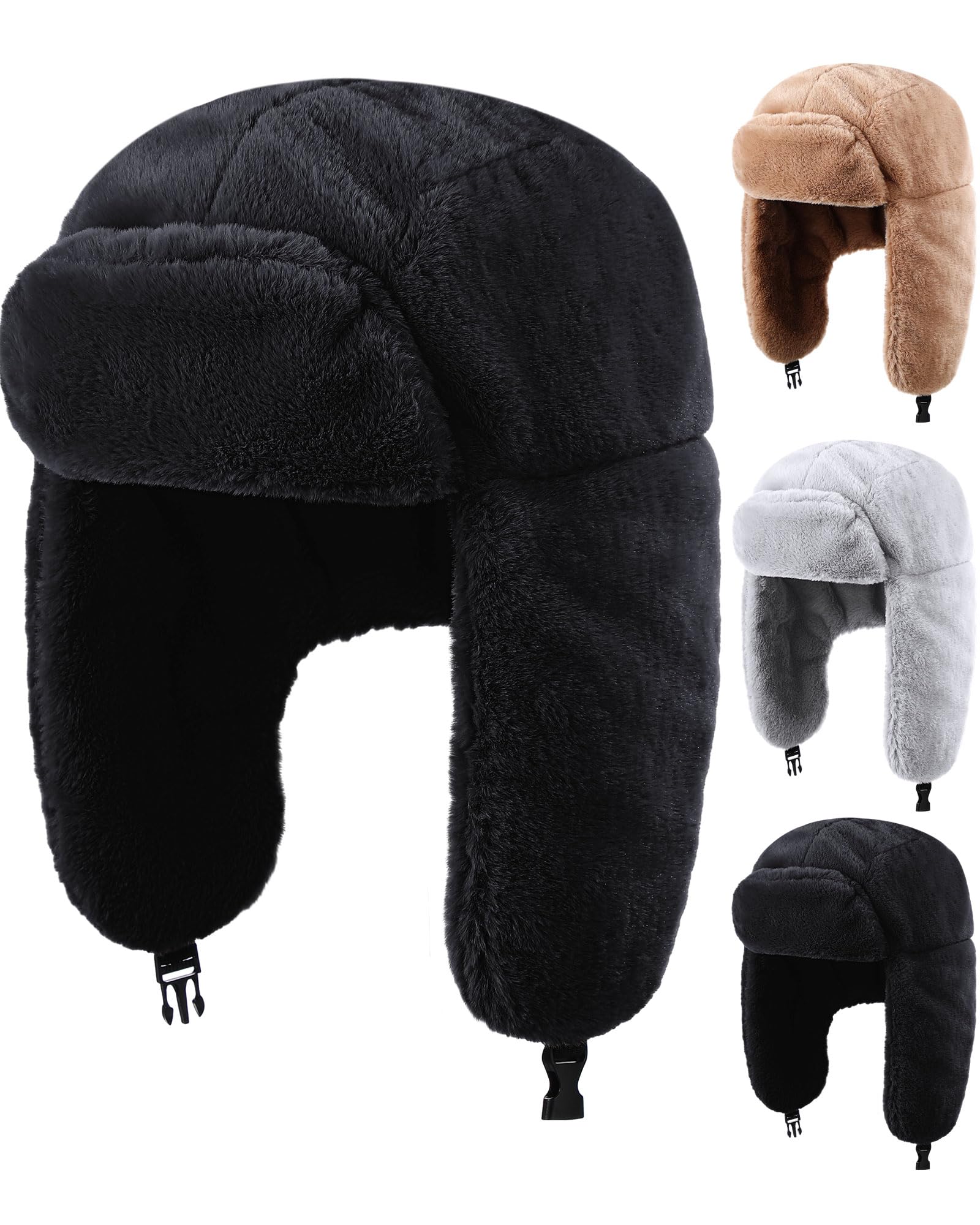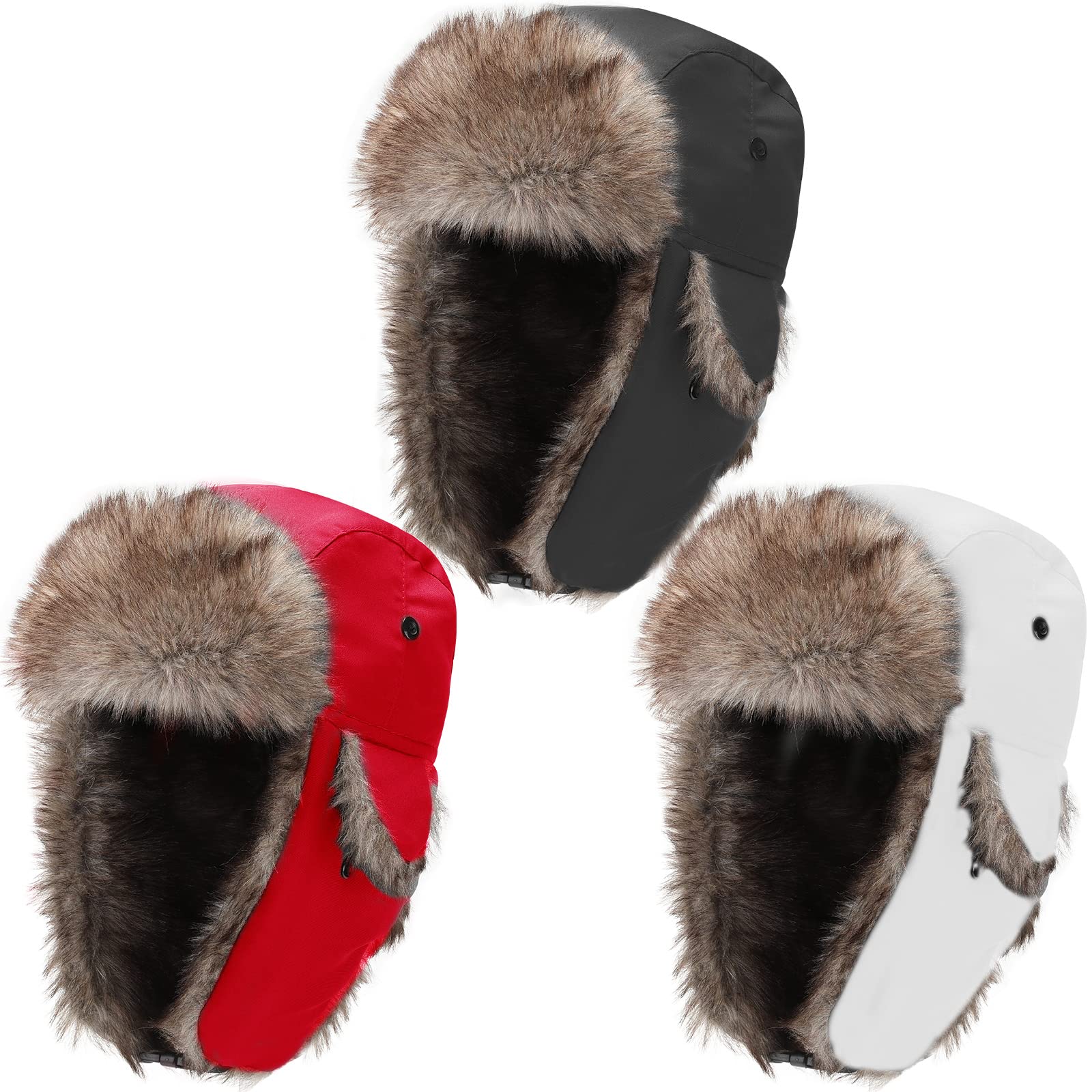 3 Pcs Ushanka Russian Hat Winter Fur Trapper Hats with Faux Fur for Adults Cozy Plush Warm Cold Windproof Ski Hunting Cycling