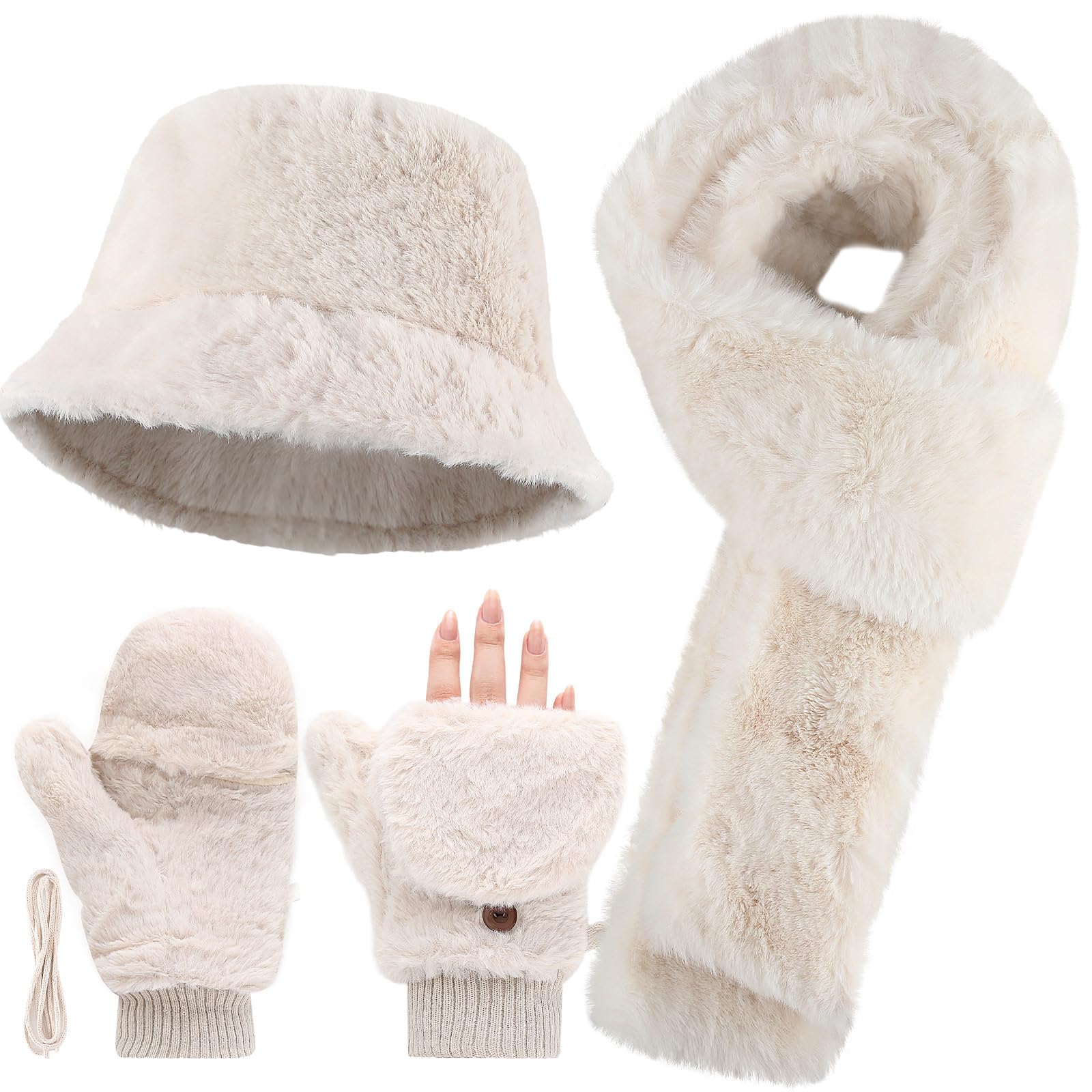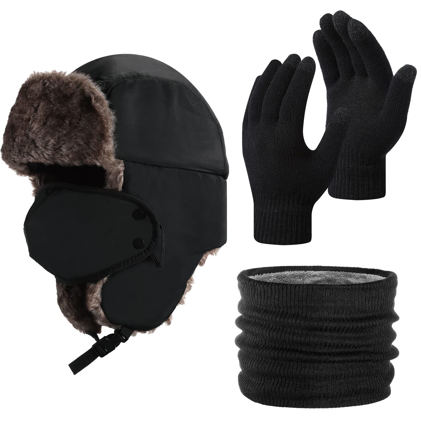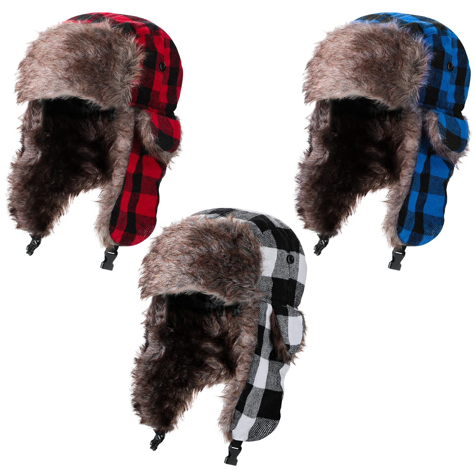 3 Pcs Ushanka Russian Hat Winter Fur Trapper Hats with Faux Fur for Adults Cozy Plush Warm Cold Windproof Ski Hunting Cycling