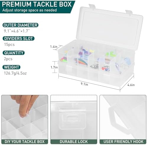 - Practical Fishing Tool kit: Our set includes a fish pliers kit, which is widely used for separating rings, removing hooks, cutting lines and adjusting baits. It also includes 2 adjustable fishing tackle boxes, the partitions can be flexibly adjusted to store various baits, fish hooks or other small items, making your fishing trip more convenient. It is an fishing kits for adults essential tool.