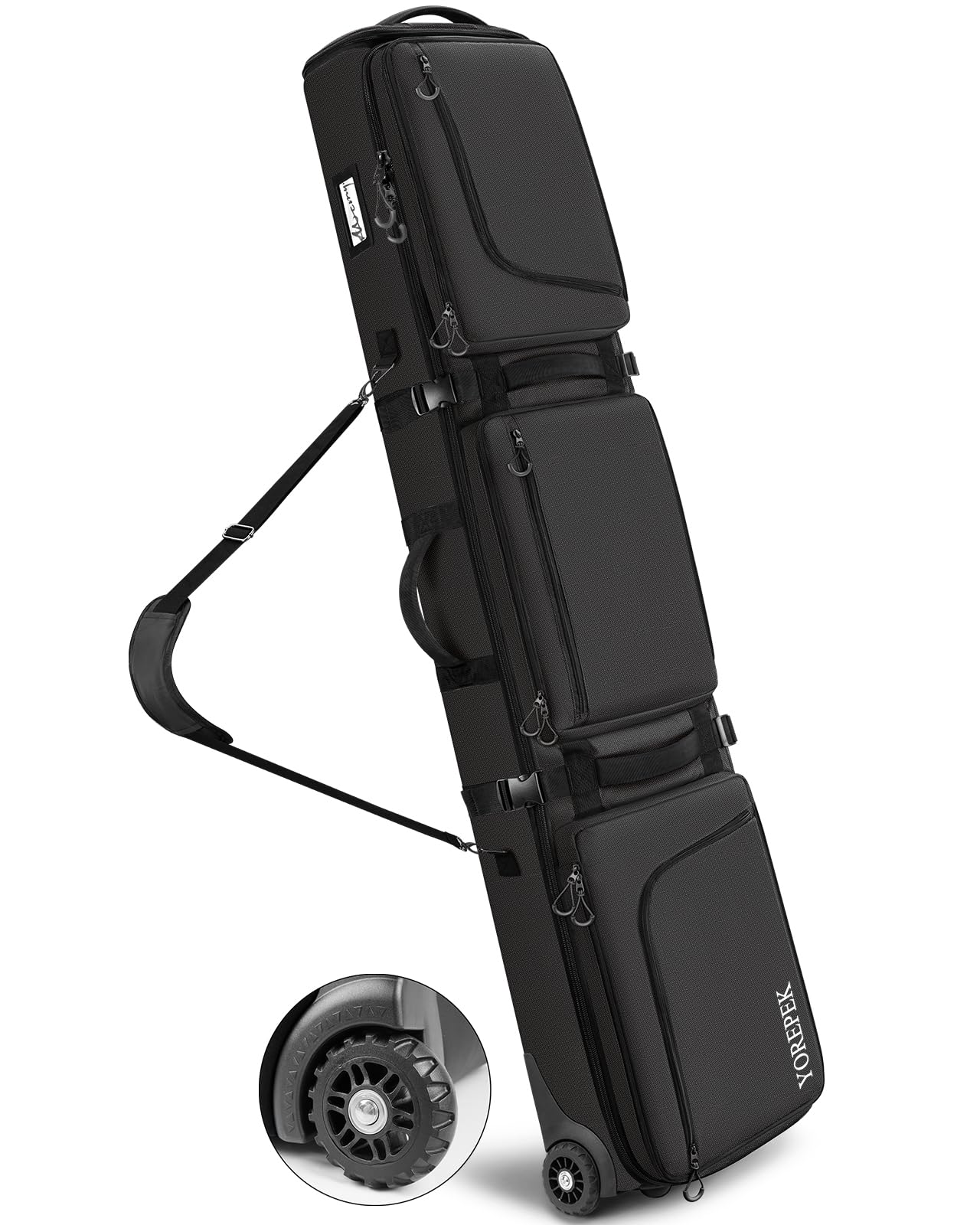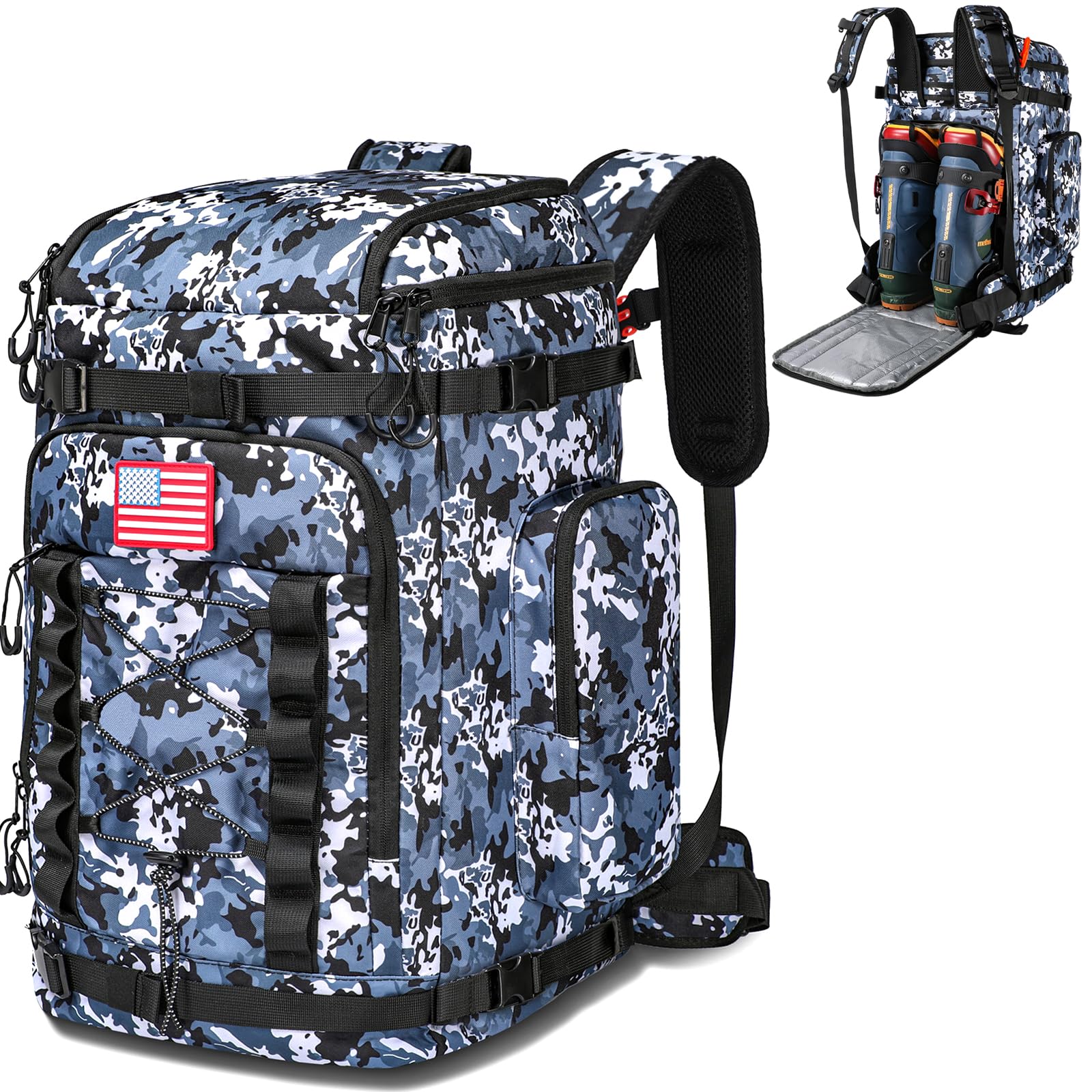 - Spacious & Organized Compartments : The large main compartment opens from the back, offering easy access to essentials like jackets, and glasses; Multiple internal pockets keep small items organized, while the ski and snowboard carry system, along with a hidden helmet pocket, make it convenient to transport all your gear hands-free
