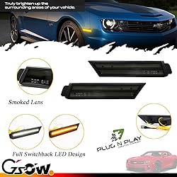 - GSOWO Switchback Sequential Front LED Side Marker Lights for Chevy Camaro 2010-2015, Smoked Lens Front Bumper Amber Turn Signal Reflectors and White DRL Lights