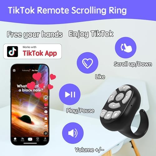 TikTok Scrolling Ring Microphone Remote Control,Fingertip Wireless Bluetooth Remote Control;for iPhone,Google Pixel,Samsung Phone (Black)