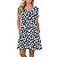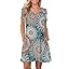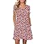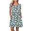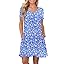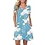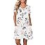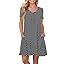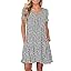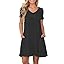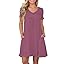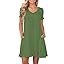 PLOKNRD Women's Casual Dress T-Shirt Summer Short Sleeve V Neck Chest Pleats Swing Dresses with Pockets 2025