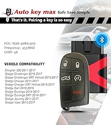 - Save Your Money And Time !!! Save Time – AutoKeyMax DIY Remote Simply Insert Included Into Vehicle's OBD 2 Port ;Then download the APP and log in according to the username and password in the package.Follow Step-by-Step Instructions. Can Be Used To Your Vehicle In Minutes. Save Money – Fobs Can Be Using AutoKeyMax’s Included Simple Key . No Expensive, Time-Consuming Dealership Appointment Required Keep Functionality - Every AutoKeyMax Replacement Key Fob, Once Properly Programmed, Will Funtion of The Original Remote. Replacement for Chrysler 300 Dodge Charger 2011 2012 2013 2014 2015 2016 2017 2018 Challenger 2015-2018 Dart 2014-2016.Please match your FCC ID# M3N-40821302 ,46 Chip.