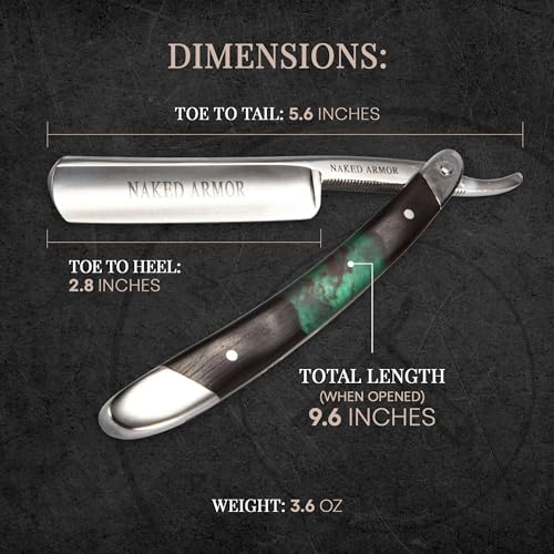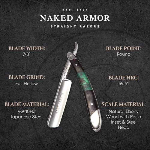 - Built to Last with Ongoing Support – Crafted from quality steel with a durable ebony wood scale with resin inset, this straight razor is designed to withstand daily use for years while maintaining perfect balance and comfort in hand. Naked Armor provides honing (if needed) and exchange options, giving you confidence in your purchase.