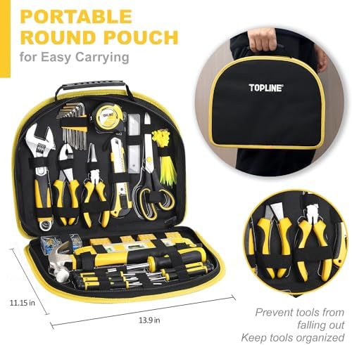 TOPLINE 208-Piece Basic Home Tool Kit with Easy Carrying Round Pouch, Household Hand Tools for Apartment, Home, Basic Tool Set, Perfect for DIY Projects, Home Maintenance