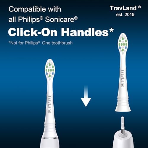 - [Perfect Compatibility with Philips Sonicare] - TravLand replacement brush head for Phillips Sonicare are specially designed and perfectly compatible with Philips Sonicare 2 Series Plaque Control, 3 Series Gum Health, HealthyWhite, FlexCare, DiamondClean, ProtectiveClean, EasyClean and other snap-on Electric toothbrush Handles.