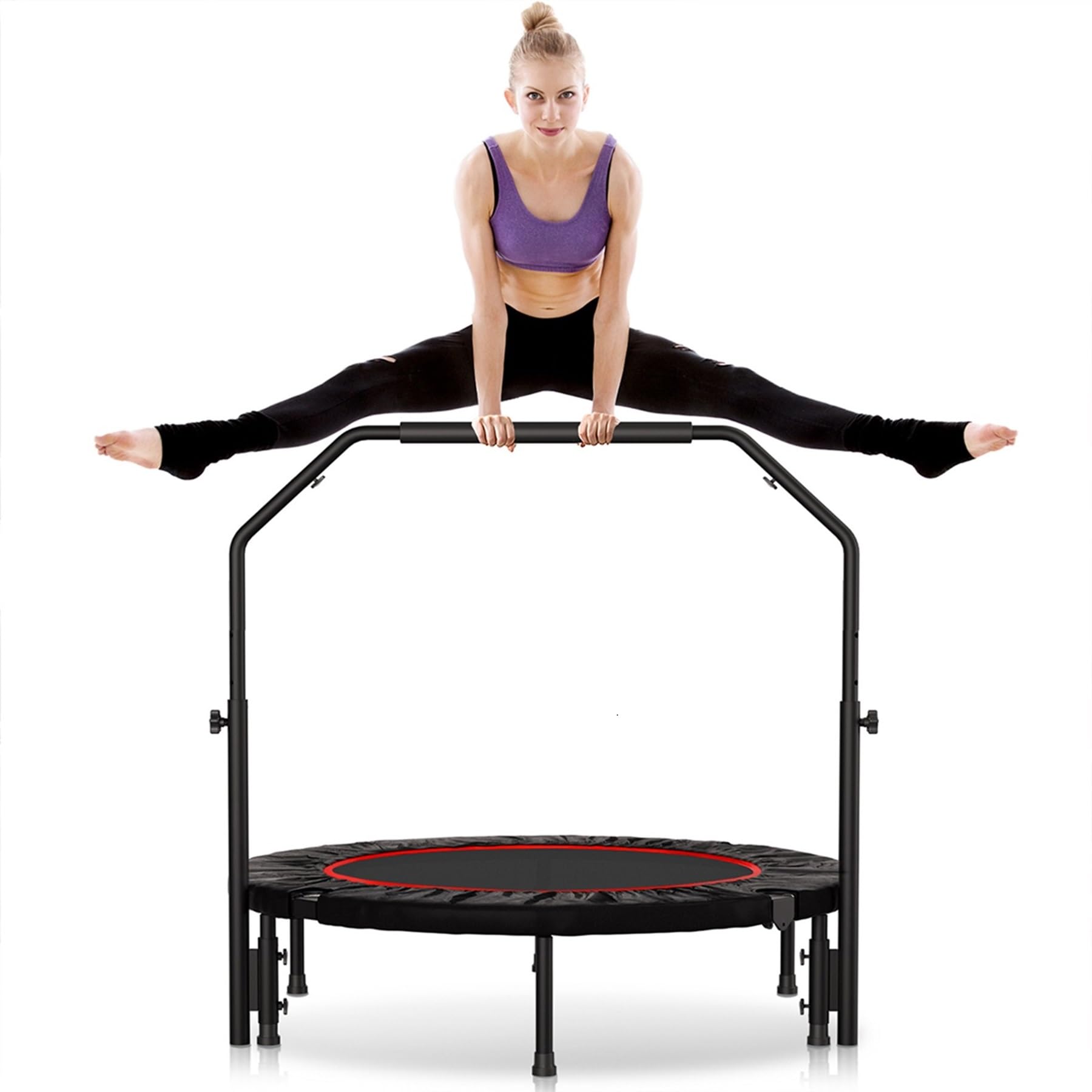 - ADJUSTABLE HANDLEBAR: The handlebar features FIVE ADJUSTABLE LEVELS to fit your height and workout preferences. Customize your fitness routine for optimal COMFORT, CONTROL, and better BALANCE on the trampoline.