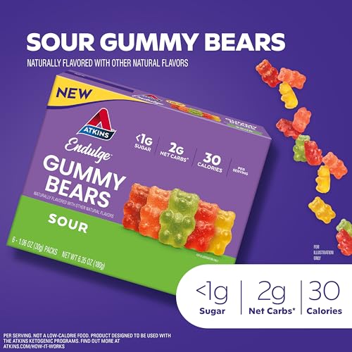 - JOYFUL SNACKING: New Atkins Endulge Gummy Bears deliver the fun taste you love without a ton of sugar and net carbs.