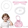 5 Pcs Old Lady Costume Set Grandma Granny Glasses Eyeglasses Chain Pearl Necklace Bracelet for Women Granny Halloween Costume