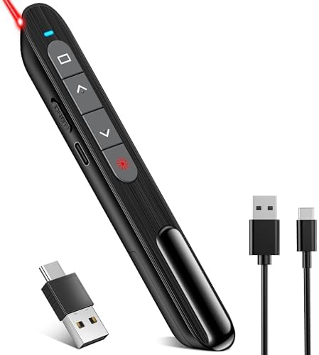 2-in-1 USB Type C Presentation Clicker with Red Light Pointer, Rechargeable Wireless Clicker for Powerpoint Presentations Support Hyperlink Volume Control, Presentation Remote for Mac Windows Keynote