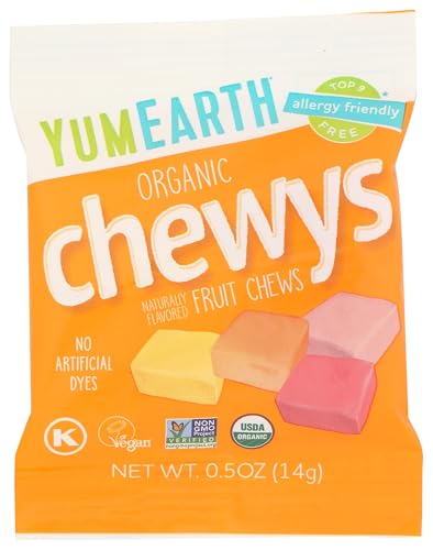 - YumEarth Organic Chewys, Fruit Chews, Vegan Friendly, Kosher, USDA Certified Organic, Non-GMO, 15 Count, 7.5 Ounce (Pack of 6)