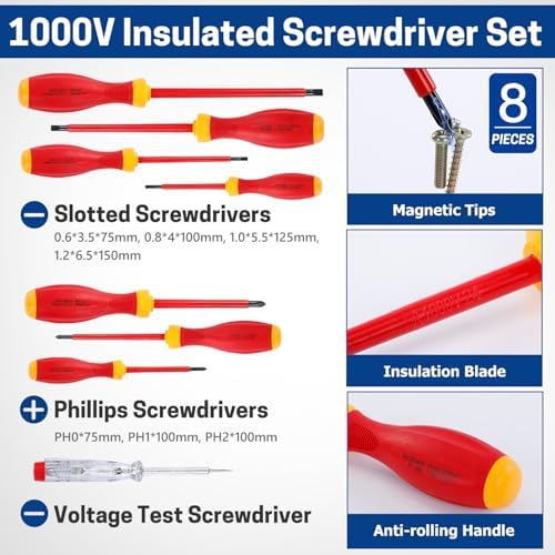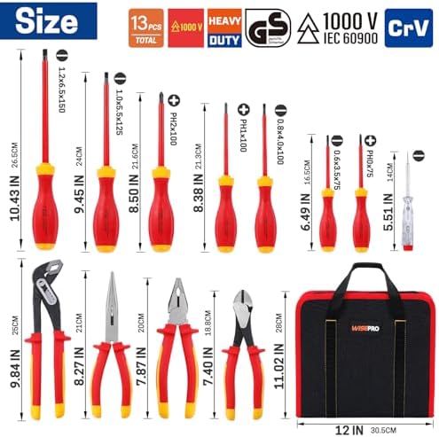 - Industrial-Grade Durability: Made from high-strength chromium-vanadium steel, this insulated electrical tools set offers exceptional durability and corrosion resistance. Perfect for tough industrial applications, it ensures reliable performance over time.