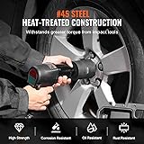 1/2 Inch Spindle Nut Socket Set: This spindle nut socket tool kit includes 6 different socket sizes: 2-3/4" x 4 Lug Outer, 2-5/8" x 6 Lug Outer, 2-3/8" x 4 Lug Outer, 2-1/2" x 4 Lug Inner, 2-1/4" x 4 Lug Inner, and a FWD front axle puller. Compatible with a wide range of vehicles, it allows for efficient removal of wheel hub nuts. Fits Various Vehicles: Our axle nut socket set is suitable for Toyota, Ford, 4WD vehicles, GM cars like Chevrolet, Buick, GMC, half-ton 4WD trucks, and front-wheel-drive cars. Impact-Resistant & Corrosion-Resistant: Made from heat-treated CR-MO steel, the impact socket set withstands high torque from impact tools. The blackened surface treatment enhances corrosion resistance, making them rust-proof, oil-resistant, dirt-resistant, and highly durable for long-term use in auto repair. Wide Application: Perfect for maintenance on vans, cars, trucks, and SUVs, this axle nut impact socket set helps you efficiently replace parts, reducing vehicle breakdowns and safety hazards. It's also ideal for custom car owners looking to upgrade their cars. Portable Storage Case: All nut sockets are neatly stored in a sturdy case for easy organization and transport. The airtight design keeps the tools dry and clean, while the handle makes it easy to carry.