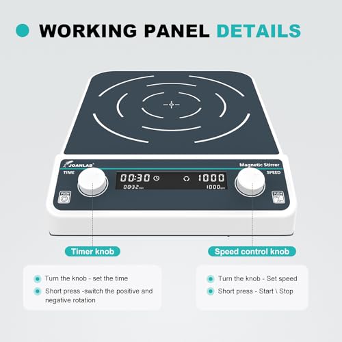 - 【FORWARD & REVERSE SWITCH】Large-capacity magnetic stirring with adjustable forward and reverse stirring function, a key to switch forward and reverse, stirring better to meet a variety of experimental needs. Mainly used for stirring low viscosity liquid or solid-liquid mixture, not applicable to high viscosity solution (resin, glue)