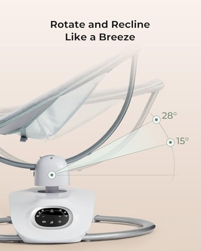 • Cozy, Breathable, and Easy to Maintain: The swing’s soft velvet edges and breathable mesh interior offer superior comfort, and its reclining seat adjusts smoothly between 15° and 28°. Plus, the seat cover removes easily for quick machine washing.
