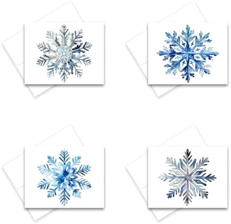 Capture the enchanting beauty of winter with this delightful set of 12 assorted snowflake Christmas greeting cards. Printed on heavy 110lb card stock, these blank cards come with envelopes, ready for you to pen your heartfelt messages inside. Each card features an exquisite snowflake design in shades of blue, showcasing nature's intricate artistry. Whether sending festive greetings to loved ones or adorning your home with seasonal decor, these cards will bring a touch of frosty elegance to your holiday celebrations. With their high-quality construction and timeless appeal, these cards make a thoughtful and cherished gift for all ages.