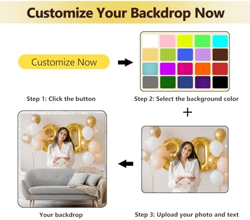✨CUSTOMIZED BACKDROP WITH PICTURE✨: Please click the "Customize now" button, select the background color you want, then you can upload the picture and text you want to customize, adjust the size and direction of the image and text, you will get a unique backdrop.