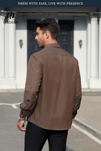HISDERN 515 Mens Dress Shirts Long Sleeve Wrinkle Free Formal Shirt Stripe Business Casual Button Down Shirts