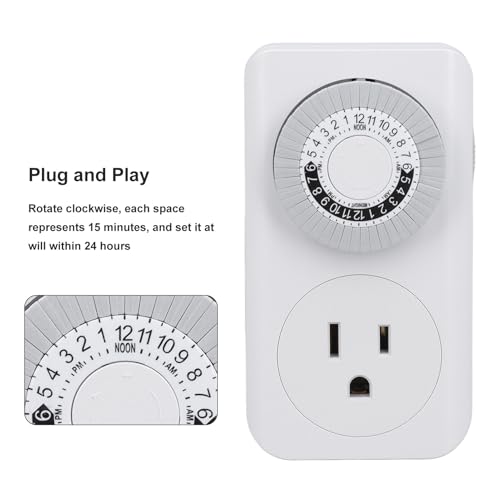- 15Min to 24H Timing: The socket supports plug and play, plug in the power supply and use, turn clockwise, each space represents 15 minutes, and set at will within 24 hours.