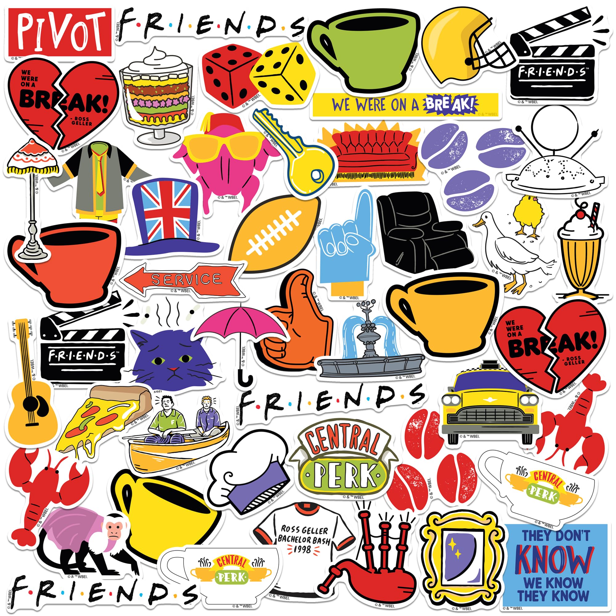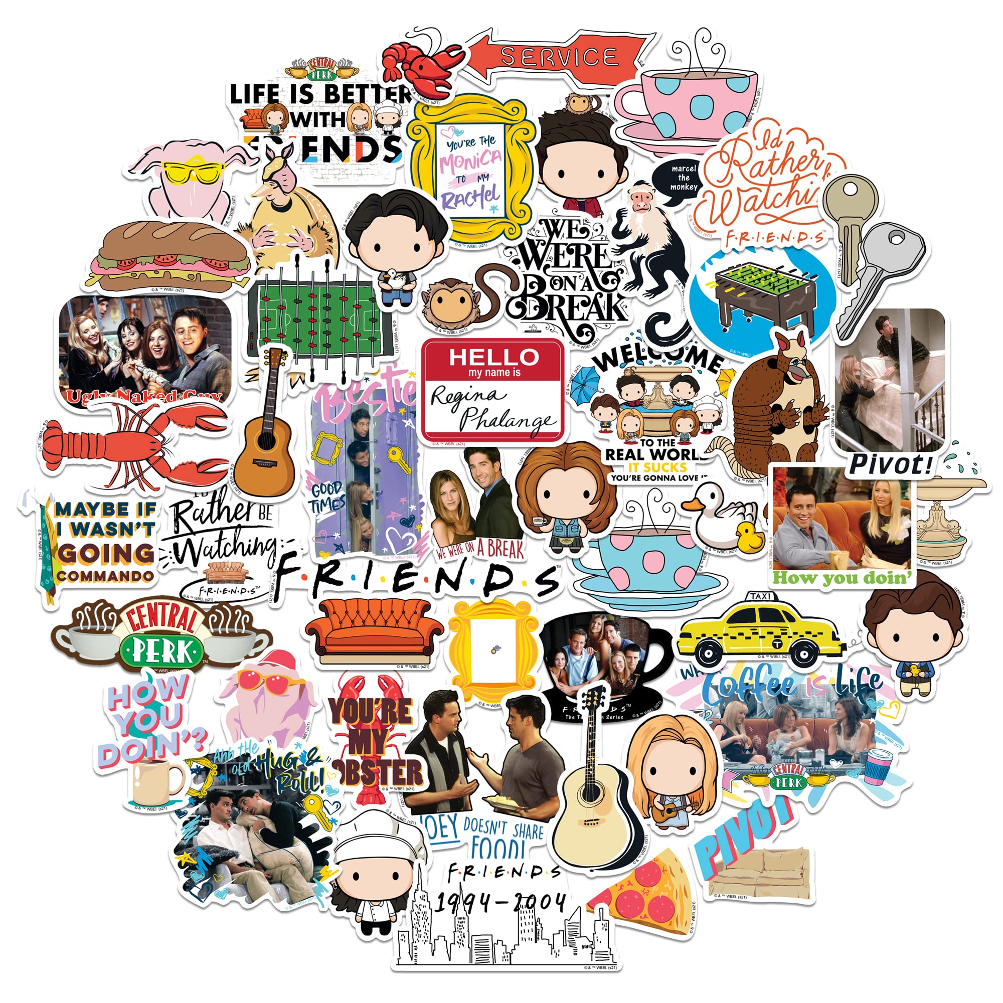 - OFFICIALLY LICENSED DESIGNS: Includes different custom stickers from Friends Frame 50ct Sticker Pack. Perfect to use as water bottle stickers, car stickers, laptop stickers, bumper stickers or planner stickers.