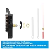 - Our clock movement kit is a good replacement for your clock running, such as three-dimensional embroidery clocks, craft clocks, frameless painting clocks, DIY quartz wall clocks, etc. They can keep your clock working well, suitable for your repair, replacement or clock-making activities. Specification Clock Hands Color: Red Material: Plastic, Quartz, Aluminum Battery Type: AA Carbon Battery (Not included) Thread Length: 6 mm / 0.24 inch Hanging Ring Inner Size: 20 x 8 mm / 0.8 x 0.31 inch (L*W) Movement Shaft Length: 13 mm / 0.51 inch Movement Box Size: 69 x 56 x 16 mm/ 2.72 x 2.2 x 0.63 inch (L*W*T) Clock Hands Length: 55 x 81 x 90 mm / 2.17 x 3.19 x 3.54 inch (Hour Hand*Minute Hand*Second Hand) Suitable for Clock Face Thickness: 2-3 mm / 0.08-0.12 inch Packing List: 1 Set - Quartz Clock Movement with Screw Spacers and Rubber Pads Advantage 1. The movement shell is made of plastic material, which is light in weight and durable; the clock hands are made of aluminum, which is lightweight, durable and can be used for a long time, providing you with a good use experience and decorative effect; 2. The whole set of clock movement can provide your clock with accuracy and reliability, and the clock hands have no ticking sound when they are in motion, providing you with a quiet environment. Instruction 1. Insert the movement into the clock face slot; 2. Install the washer and nut in the movement shaft; 3. Place the hour hand, minute hand, and second hand at the twelve o'clock position in order. NOTE: 1. Please check the size of the clock movement for your purchase to verify whether it can fit over your clock; 2. Do not use excessive force when installing, or it will bend.
