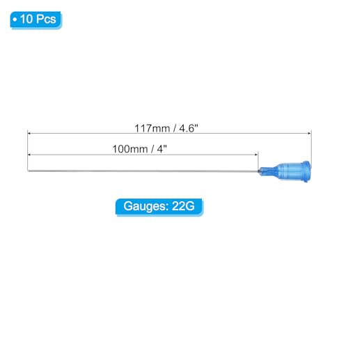 Blunt Tip Dispensing Needles 22G, 10 Pcs 4 Inch Industrial Liquid Dispenser Needle with Lure Lock for Refilling Liquid Ink Adhesive Glue, Blue
