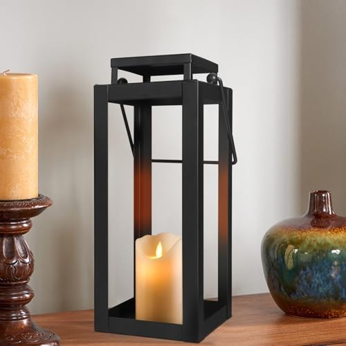 - 【Classic design and quality materials】This black metal candle lantern has a vintage and modern farmhouse design to add warmth and charm to any space. Crafted to enhance the atmosphere in dining rooms, living rooms, fireplaces, bedrooms, kitchens, porches and more.