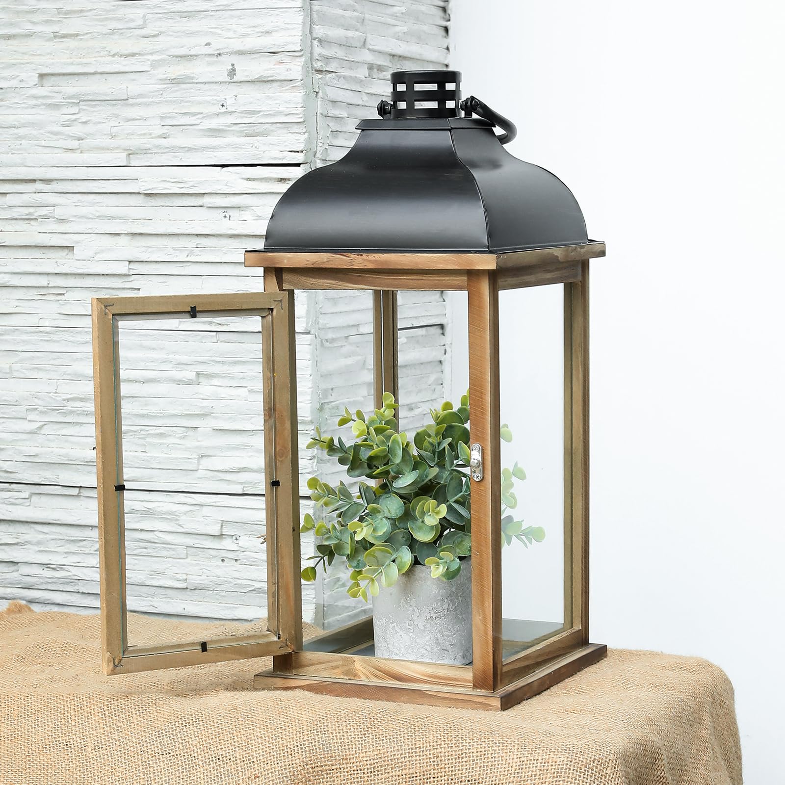 - 【Easy to Use & Compatible with Various Candle Sizes】Measuring 6.8"L x 6.8"W x 18"H, the lantern is simple to open for placing candles inside(no glass), creating a cozy atmosphere. It accommodates different sizes of pillar candles, tea light candles, or LED candles (candles not included), making it versatile for various decorative needs.