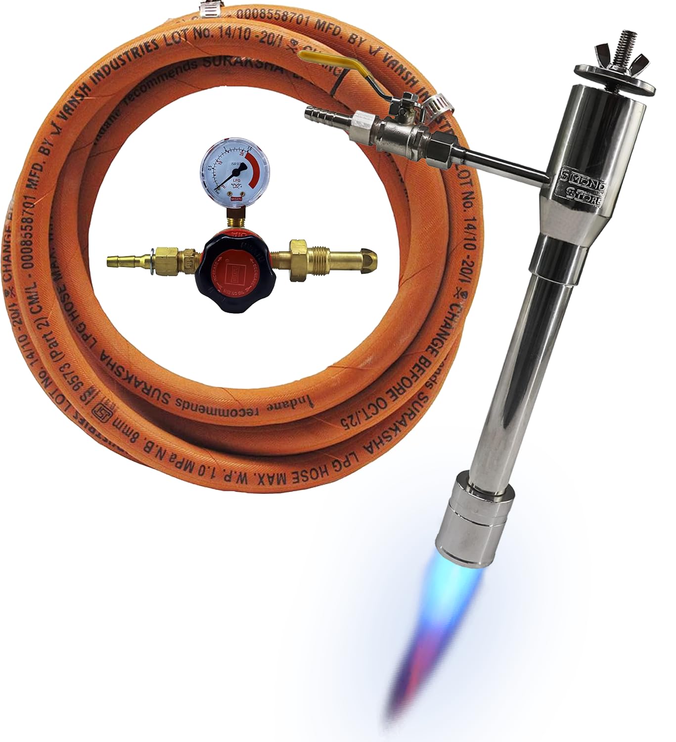 SIMOND STORE Propane Forge Single Burner Kit, Propane Burner for Blacksmithing Furnace Foundry Forge Jewelry Making Kiln Farrier - Stainless Steel Propane Burner Kit Includes Valve, Hose & Regulator…